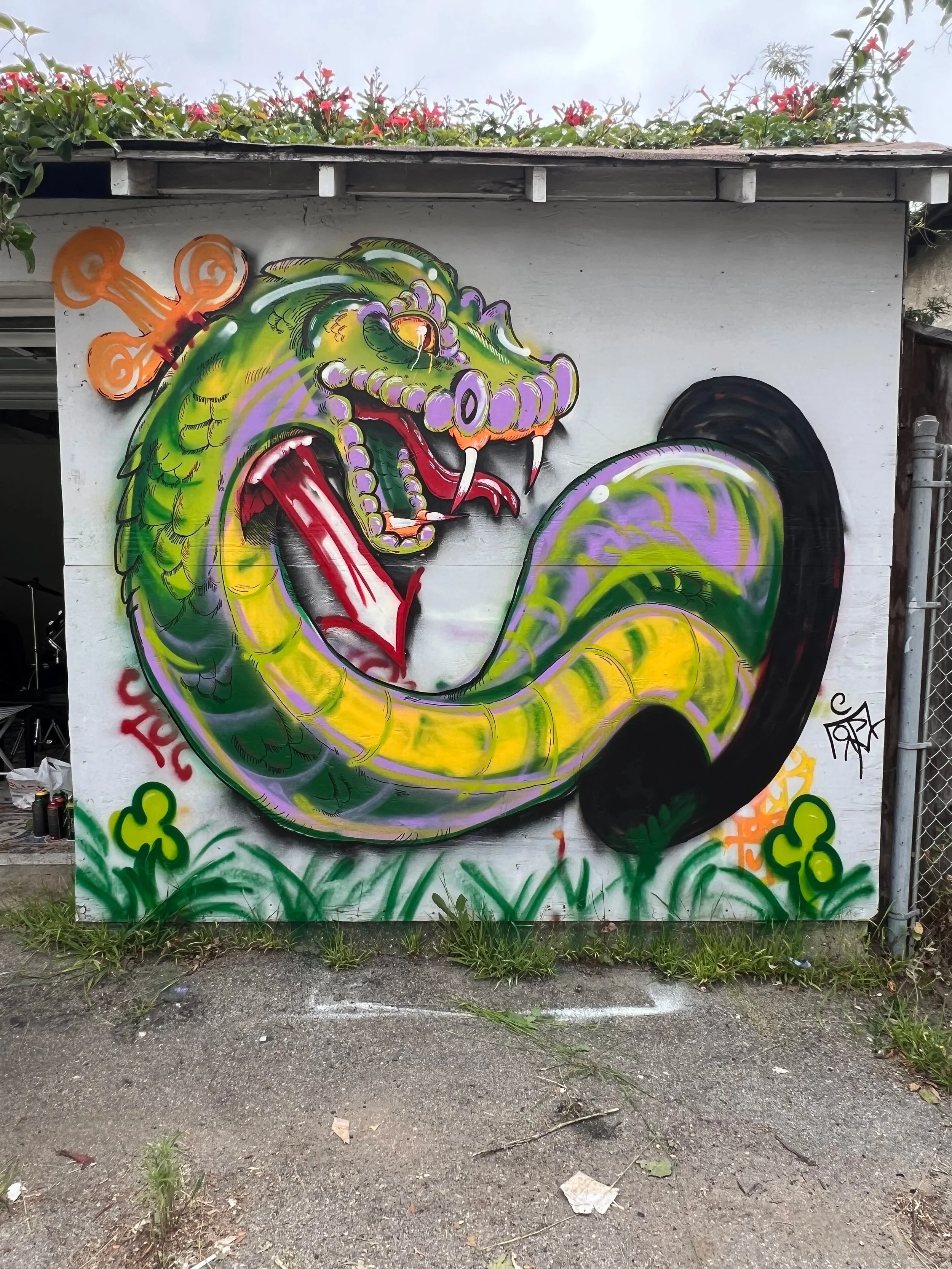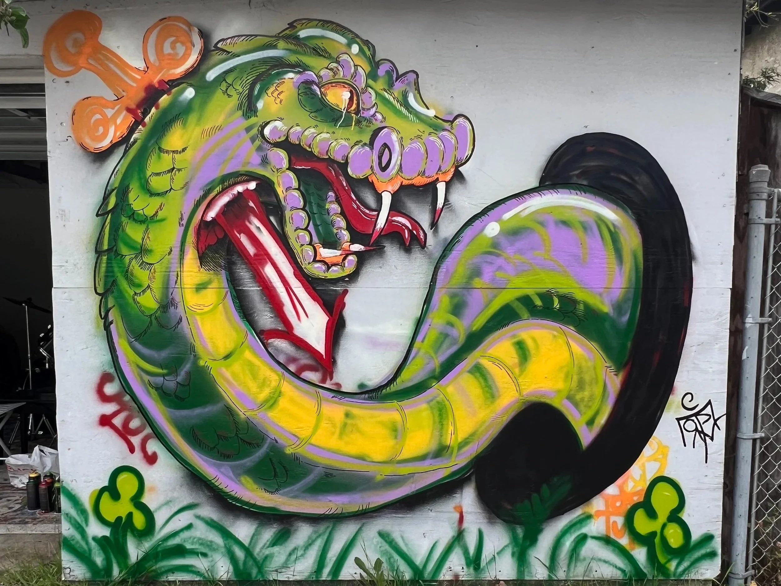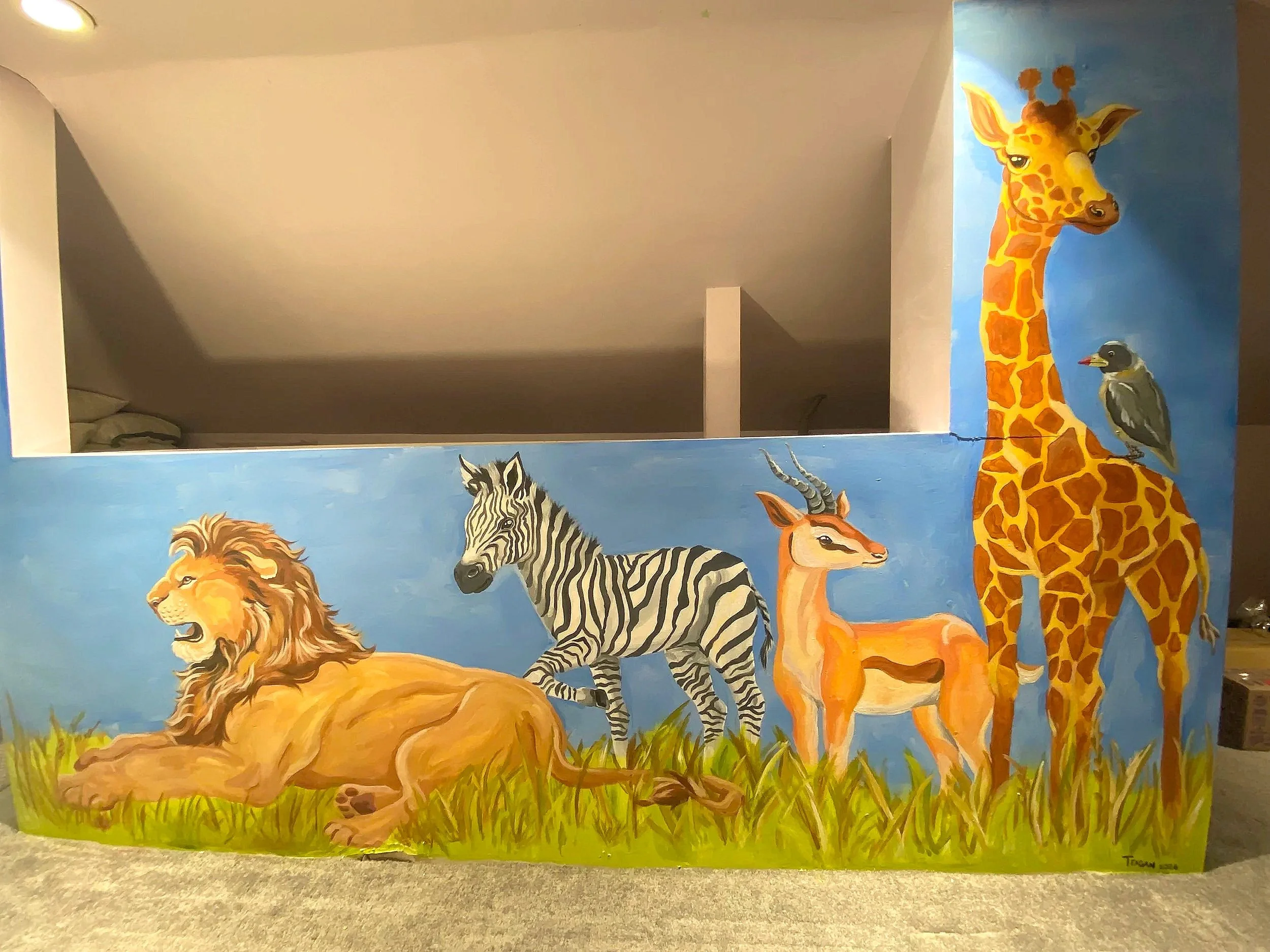 Commissioned large-scale murals indoors and outdoors. Media includes spray paint, acrylic paints, and paint markers.